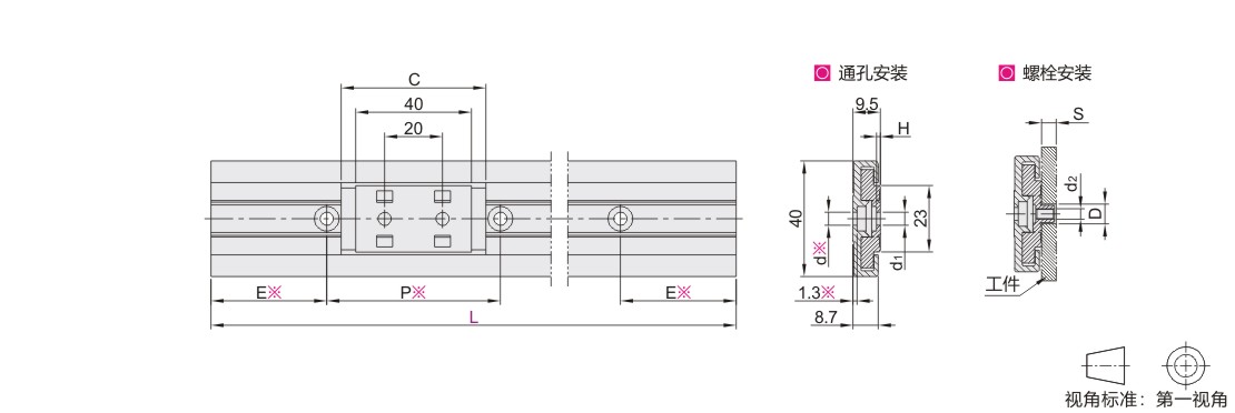 | 型号 | 安装孔 | P | d | 静态载荷 (N) |