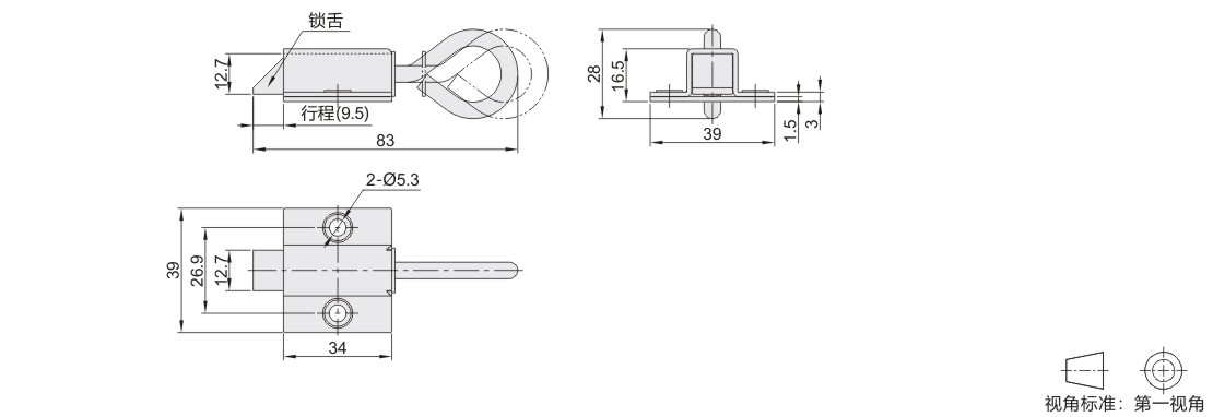 滑动式方型插销 中程距离 自锁型 Q235 镀蓝白锌 带弹簧装置