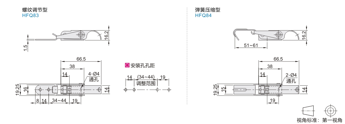 内弹簧型/带螺纹型搭扣 轻载型 SUS304 镜面抛光 窄型
