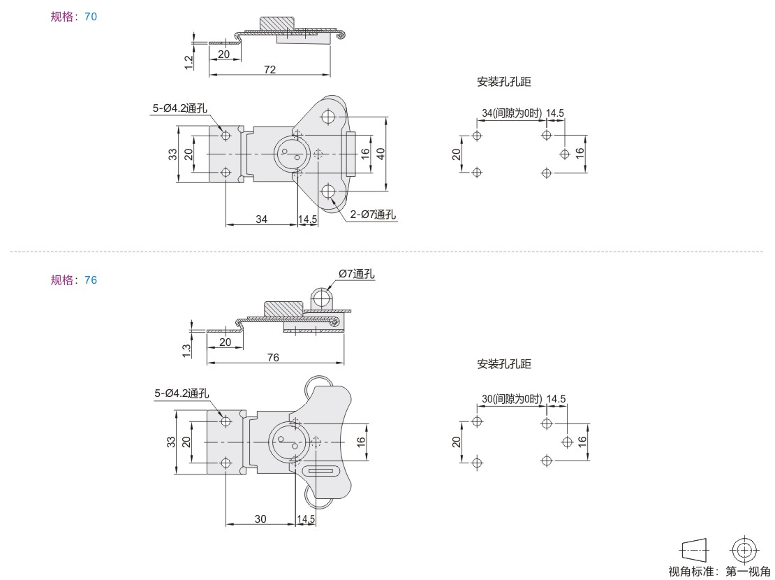 箱包用搭扣 轻载型 带挂锁孔型 SPCC 镀铬 蝶形