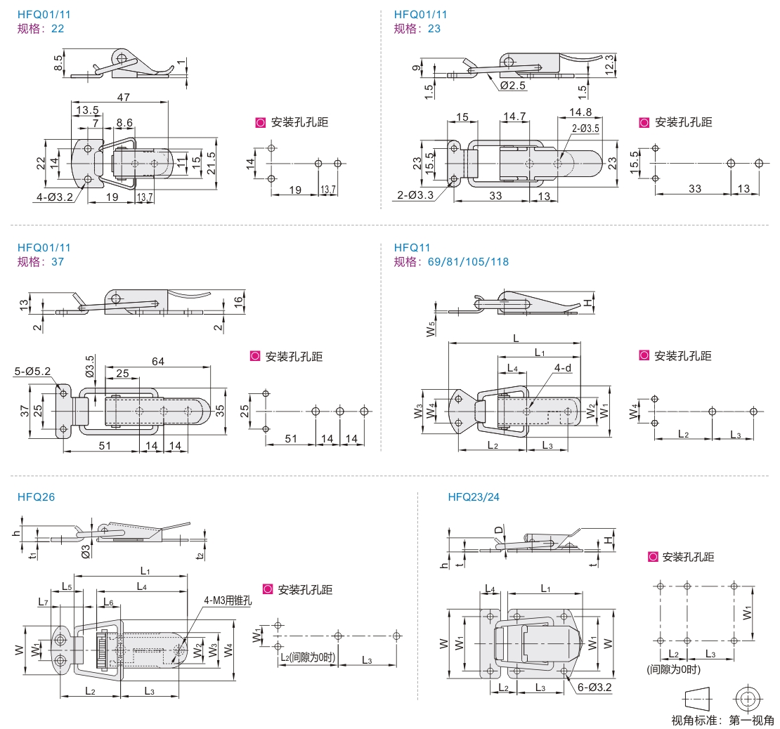 | HFQ01 | 轻载型 | 扁嘴型 | SPCC | 镀铬 |