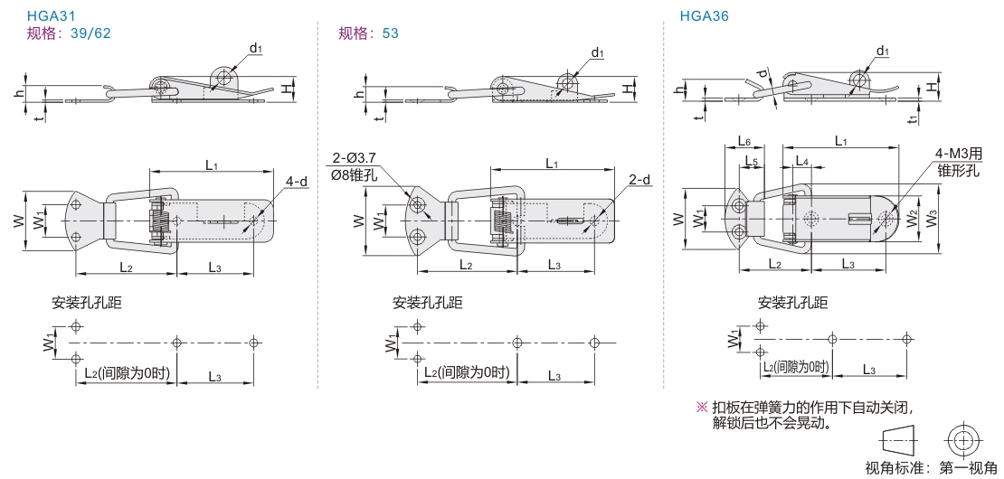 | HGA31 | 扁嘴型 | 单挂锁孔 |