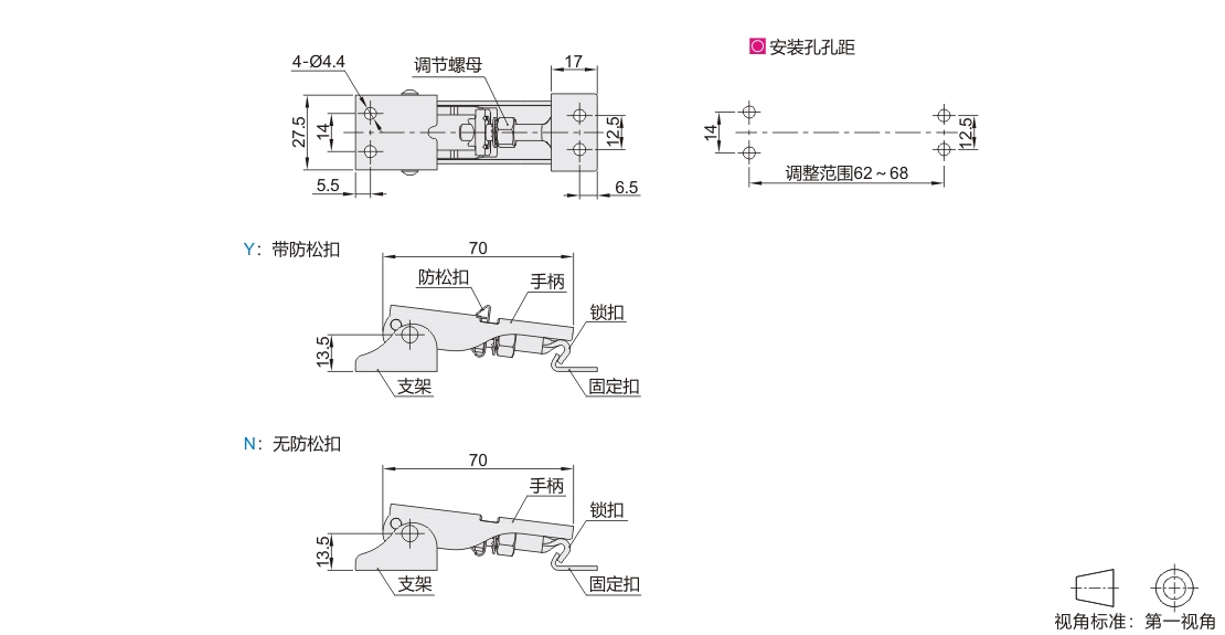 带螺纹型搭扣 中载型 防松扣可选型 宽嘴型