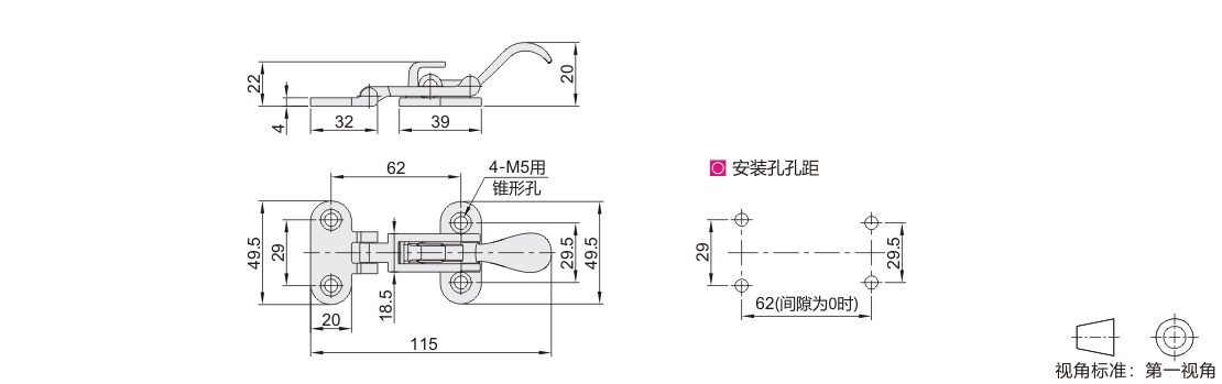 标准型搭扣 中载型 带挂锁孔型 SUS304 镜面抛光 T型