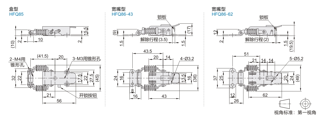 | HFQ85 | 自锁型 | 盒型 | SUS304 | 滚筒研磨 |