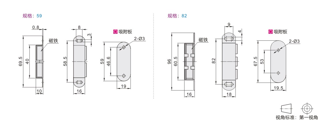 标准磁力扣 侧面普通吸力 四磁芯 金属 镀锌