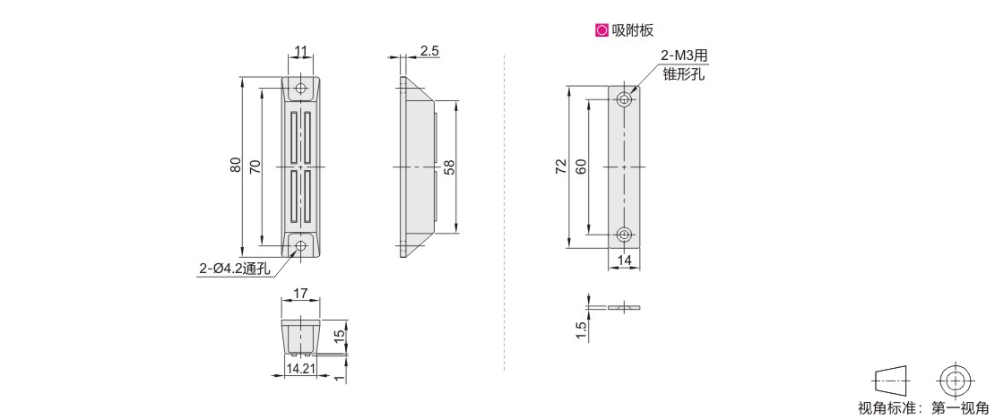 标准磁力扣 正面吸附力 强吸力 四磁芯 防水型