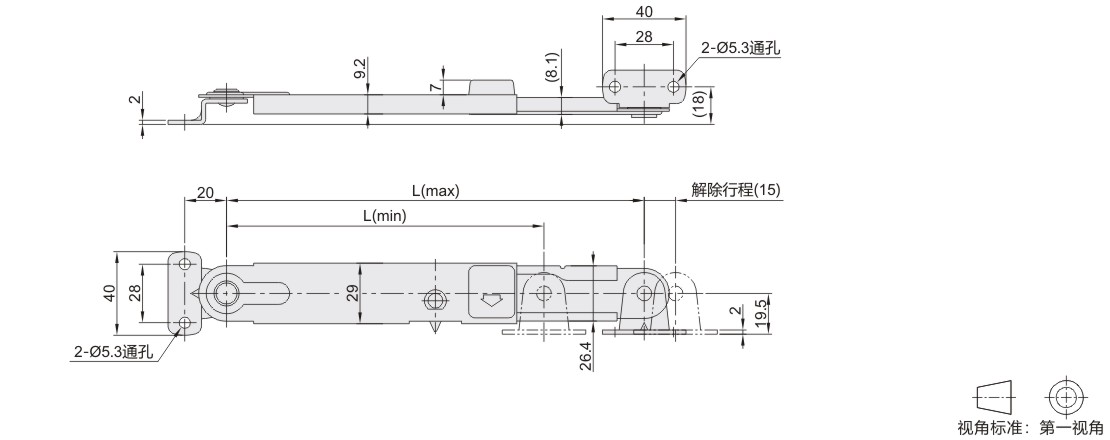 自动锁定型伸缩撑杆 普通门用 带安全锁 SUS316 光泽滚筒研磨 两点固定