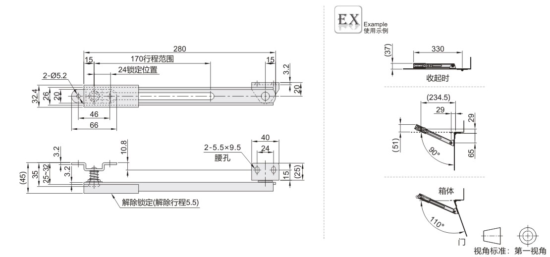 自动锁定型伸缩撑杆 微型门用 微型 SPCC 镀彩锌 两点固定