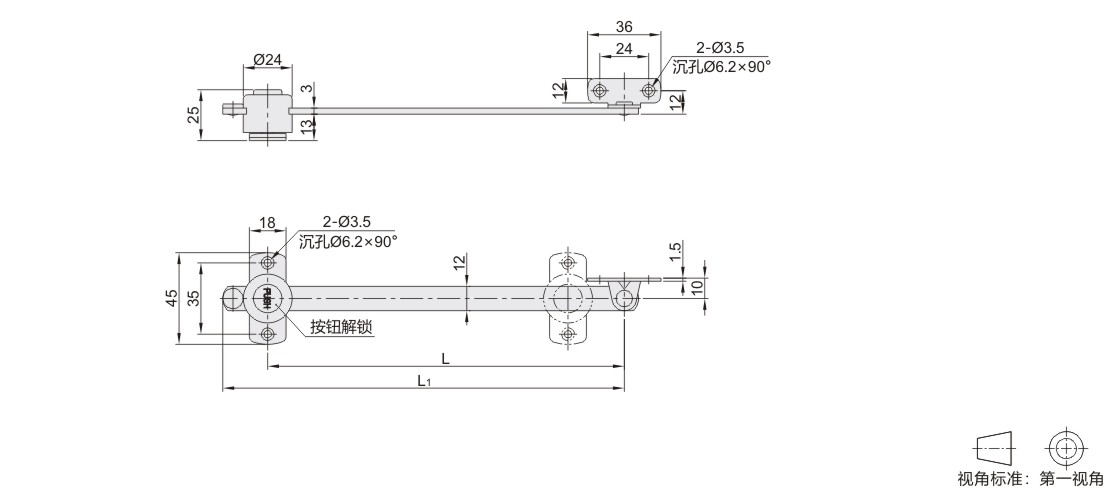 自动锁定型伸缩撑杆 普通门用 两点固定 带解锁钮 自动锁定 SUS304 镜面抛光