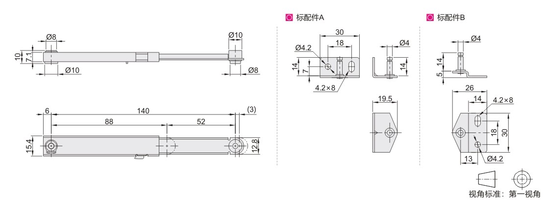 自动锁定型伸缩撑杆 微型门用 带安全锁机构 SUS304 滚筒抛光 两点固定