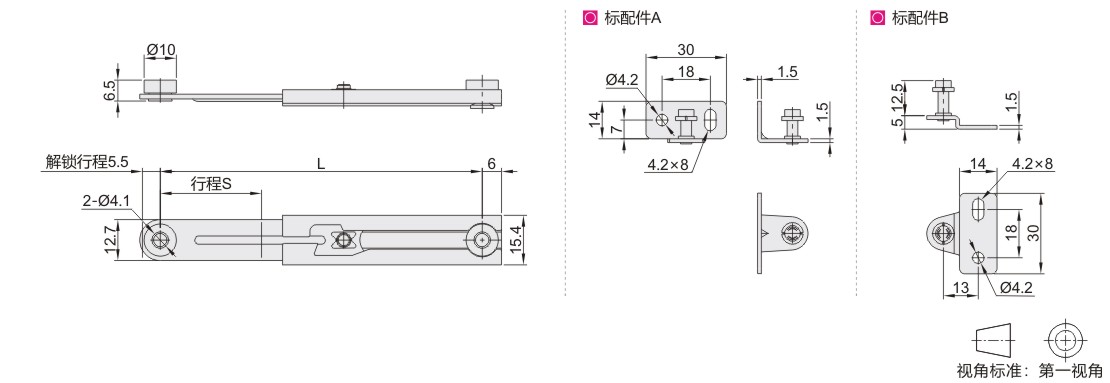 自动锁定型伸缩撑杆 微型门用 微型 自动锁定 SUS304 滚筒抛光 两点固定