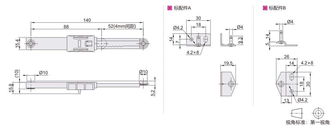 多级锁定型伸缩撑杆 微型门用 微型 SUS304 滚筒抛光 两点固定