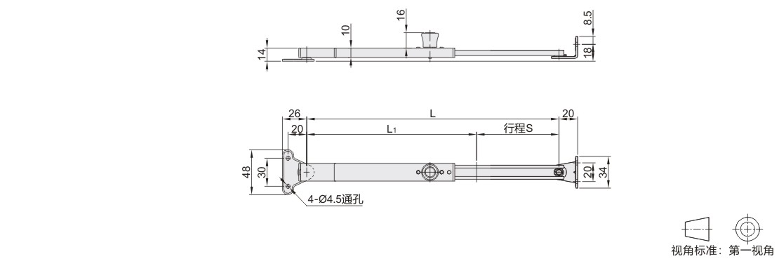 手解锁式伸缩撑杆 带解锁钮 两点固定 普通门用 SUS304 表面拉丝
