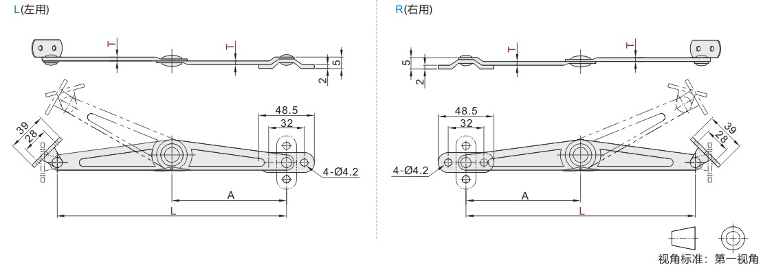 限位锁定型旋转撑杆 普通门用 分左右用 碳钢/SUS304 两点固定