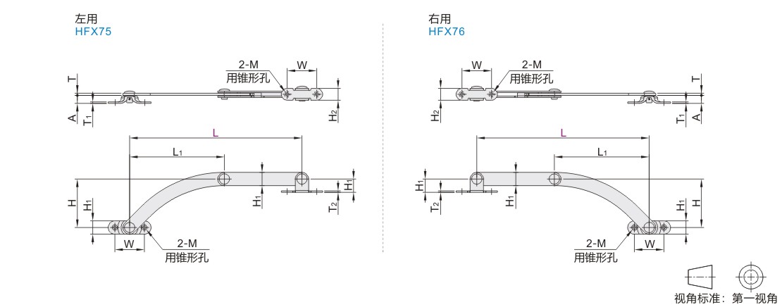 限位锁定型旋转撑杆 普通门用定 支座可拆型 碳钢 镀铬 两点固