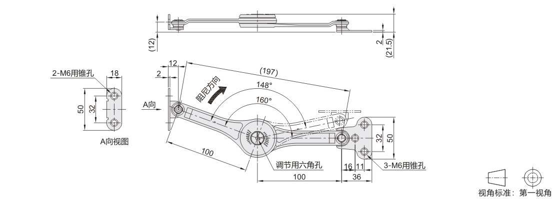 阻尼限位锁定型旋转撑杆 普通门用 阻尼可调节型 镀镍 两点固定