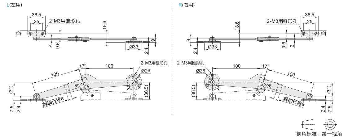自动锁定型旋转撑杆 普通门用 带固定机构型 三点固定