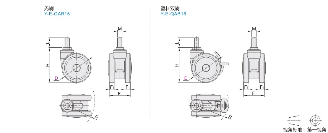双轮医疗脚轮 容许载荷70-90kg 丝杆活动型