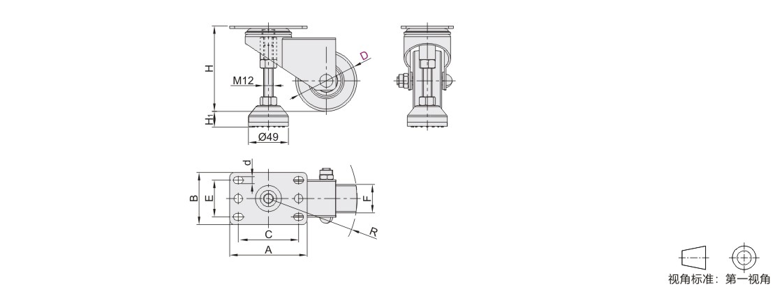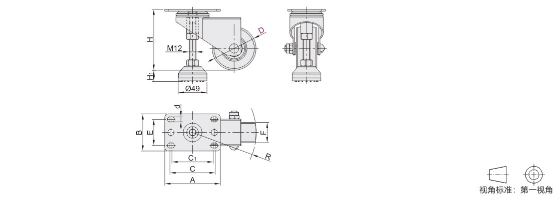 脚踏式水平调节脚轮 平底活动型•容许载荷200~260kg