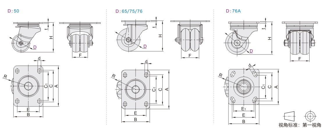 当D=65/76A时,轮部代号AF为防静电聚氨酯,工作温度25℃左右,电阻值10⁵~10⁹Ω。