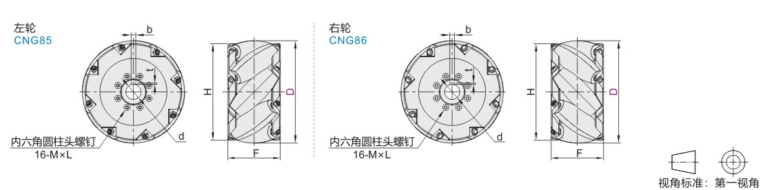 | CNG85 | 麦克纳姆左轮 | 铝合金 | 本色阳极氧化 | Q235 | 镀锌 |