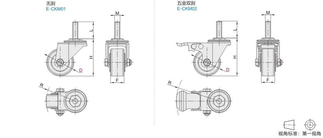 经济型美式系列轻型脚轮 容许载荷30~40kg 丝杆活动型