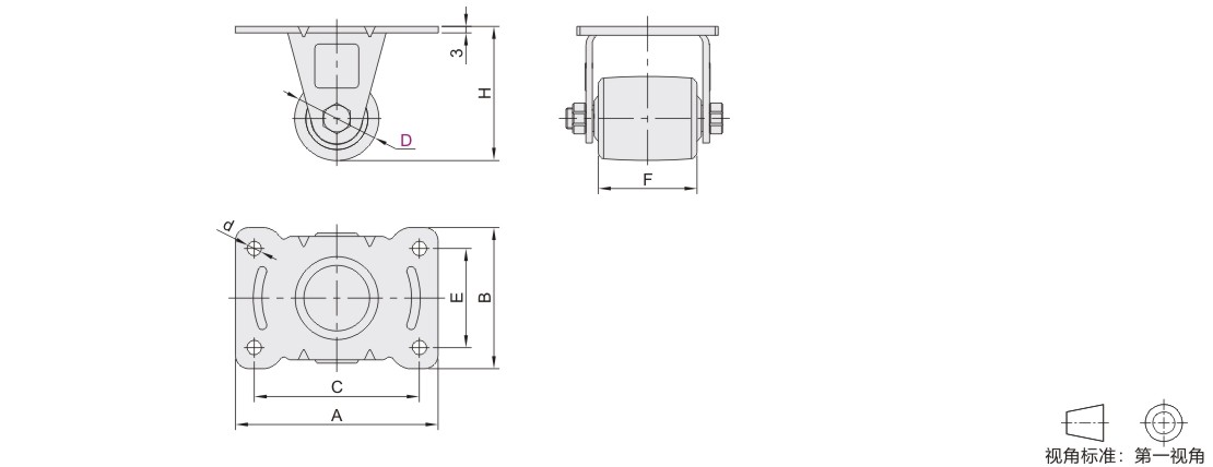 美式系列低重心脚轮 容许载荷200kg 固定型