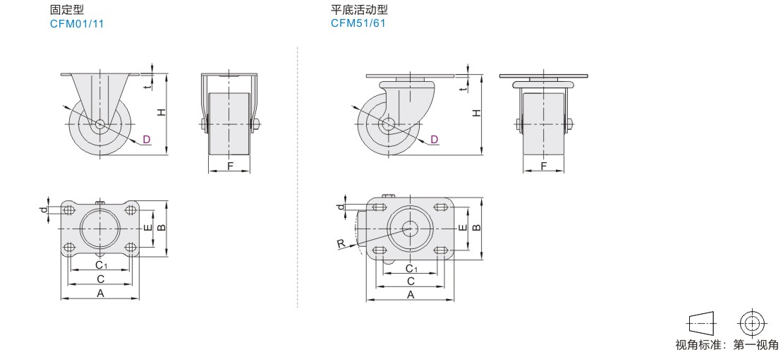 日韩系列低重心脚轮 容许载荷300kg 固定型/平底活动型