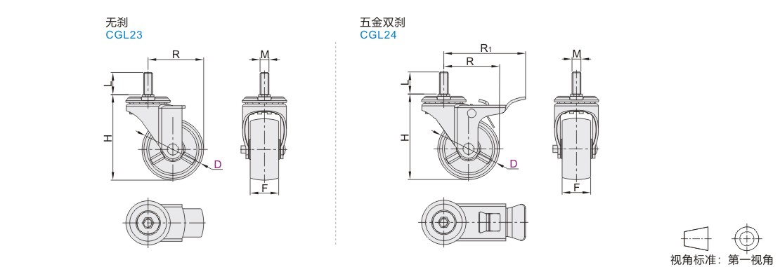 不锈钢脚轮 容许载荷45-50kg 丝杆活动型
