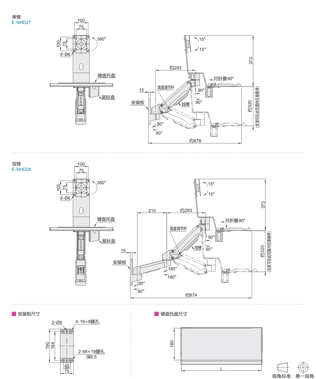 经济型重载显示器支架 单显示器 壁挂式安装 固定型•气弹簧锁定型•单臂/双臂