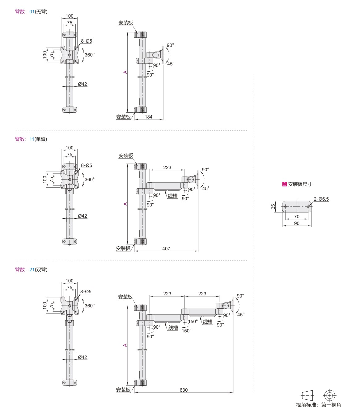 经济型显示器支架 无键盘 单显示器 立柱壁挂式安装 立柱锁紧•普通型•无臂/单臂/双臂