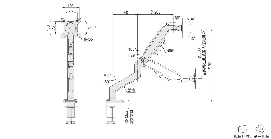 | NHL64 | 双臂 | 桌面夹紧式/穿孔安装 | 铝合金 | 黑色 |