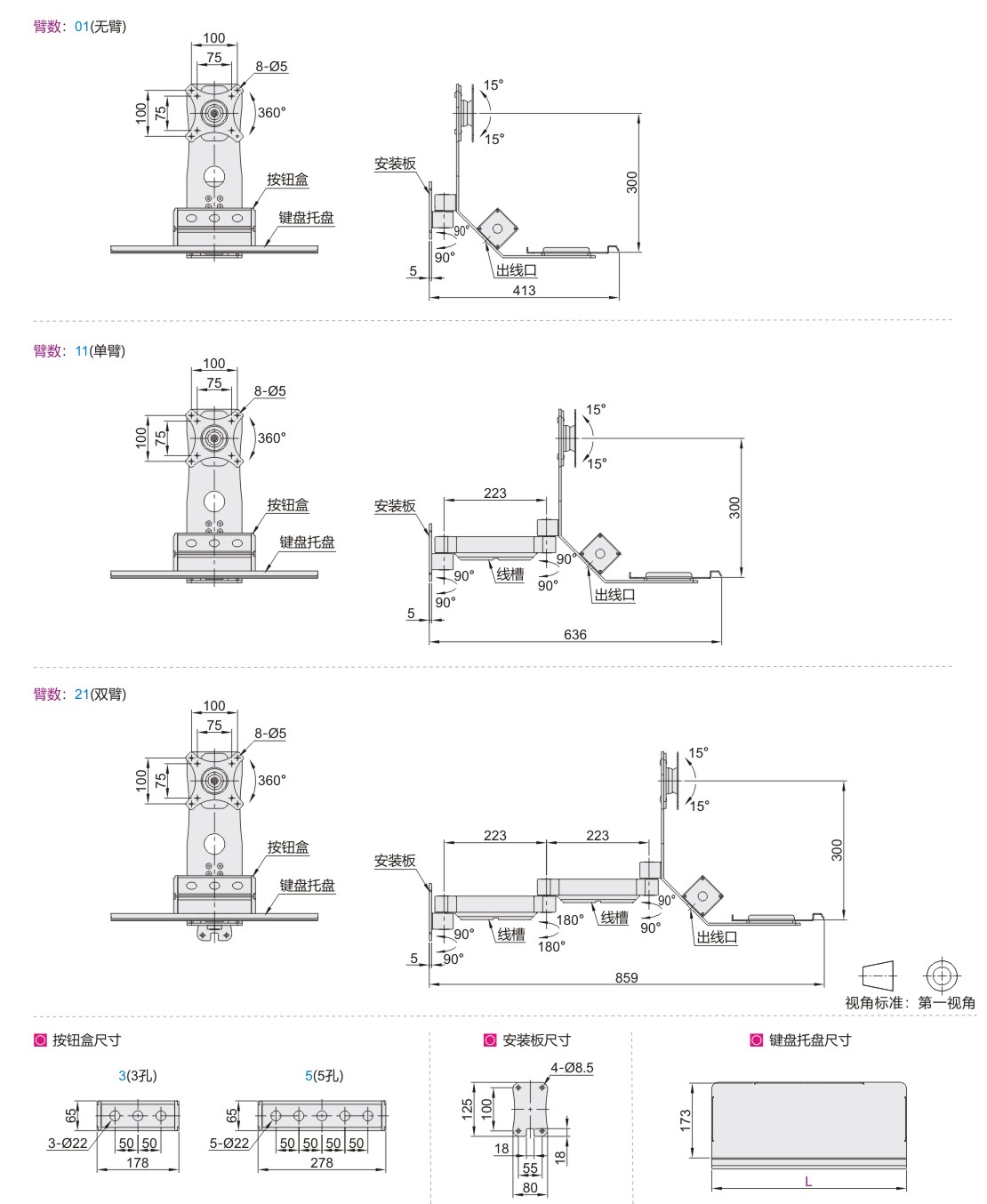 经济型显示器支架 通用键盘 单显示器 壁挂式安装 固定型•带按钮盒