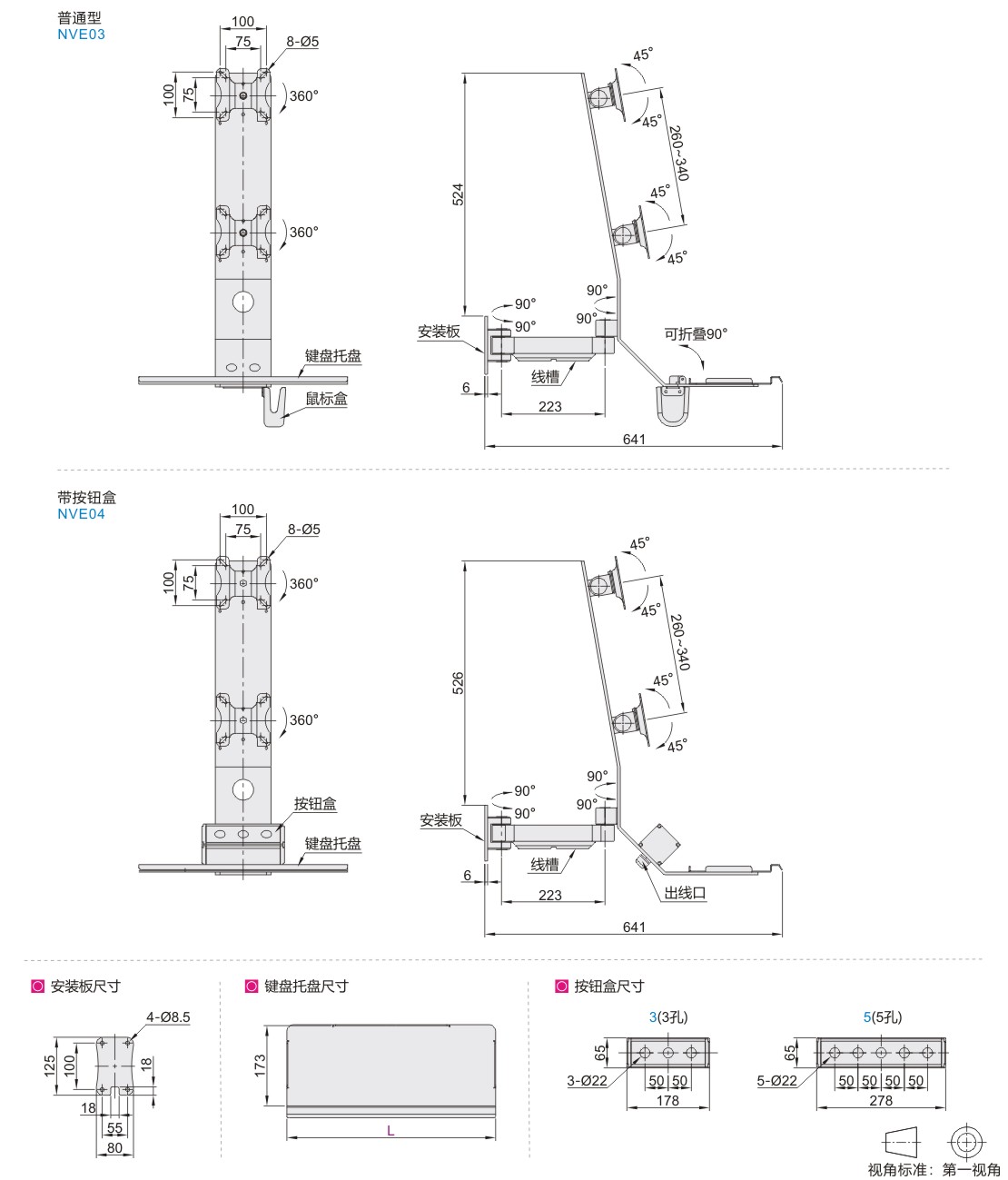| NVE03 | 通用键盘 | 壁挂式安装 | 可折叠/不可折叠 | 锁孔安装 | 铝合金 | 银色/黑色 | — |