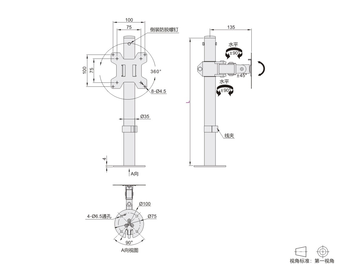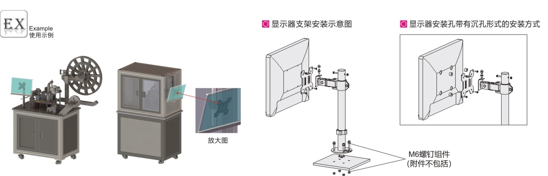 怡合达显示器支架 无臂 无键盘 单显示器 立式/吊顶安装 Q235 黑色