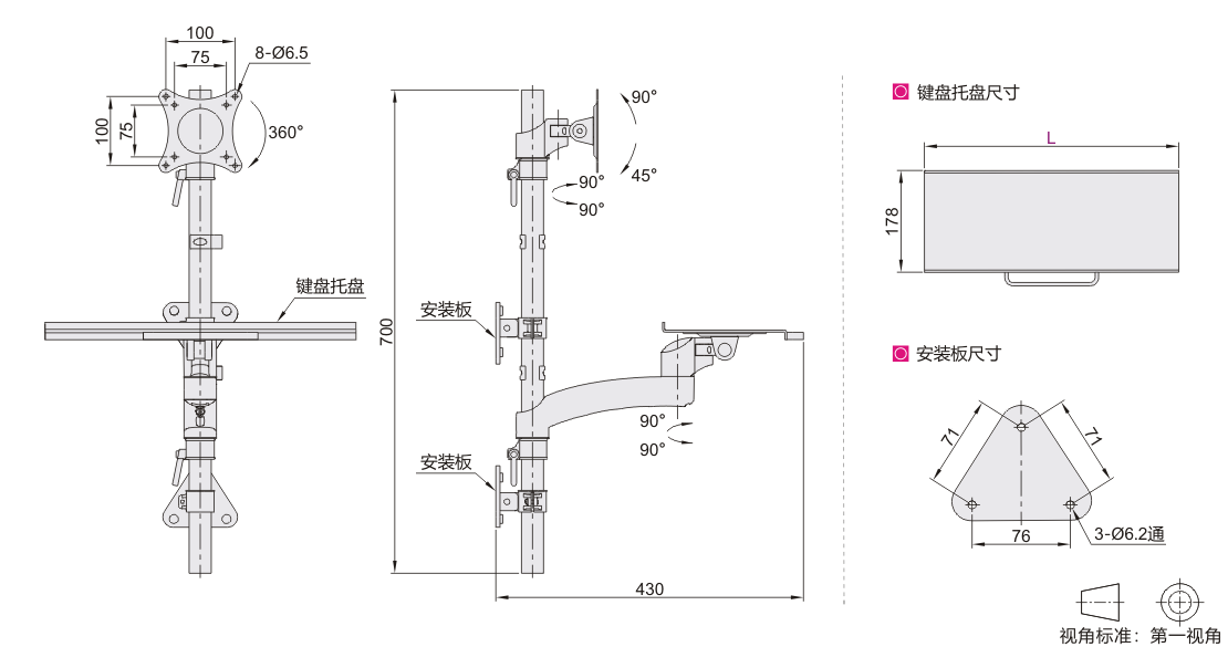 怡合达显示器支架 通用键盘 单显示器 立柱壁挂式 立柱锁紧 普通型 单臂