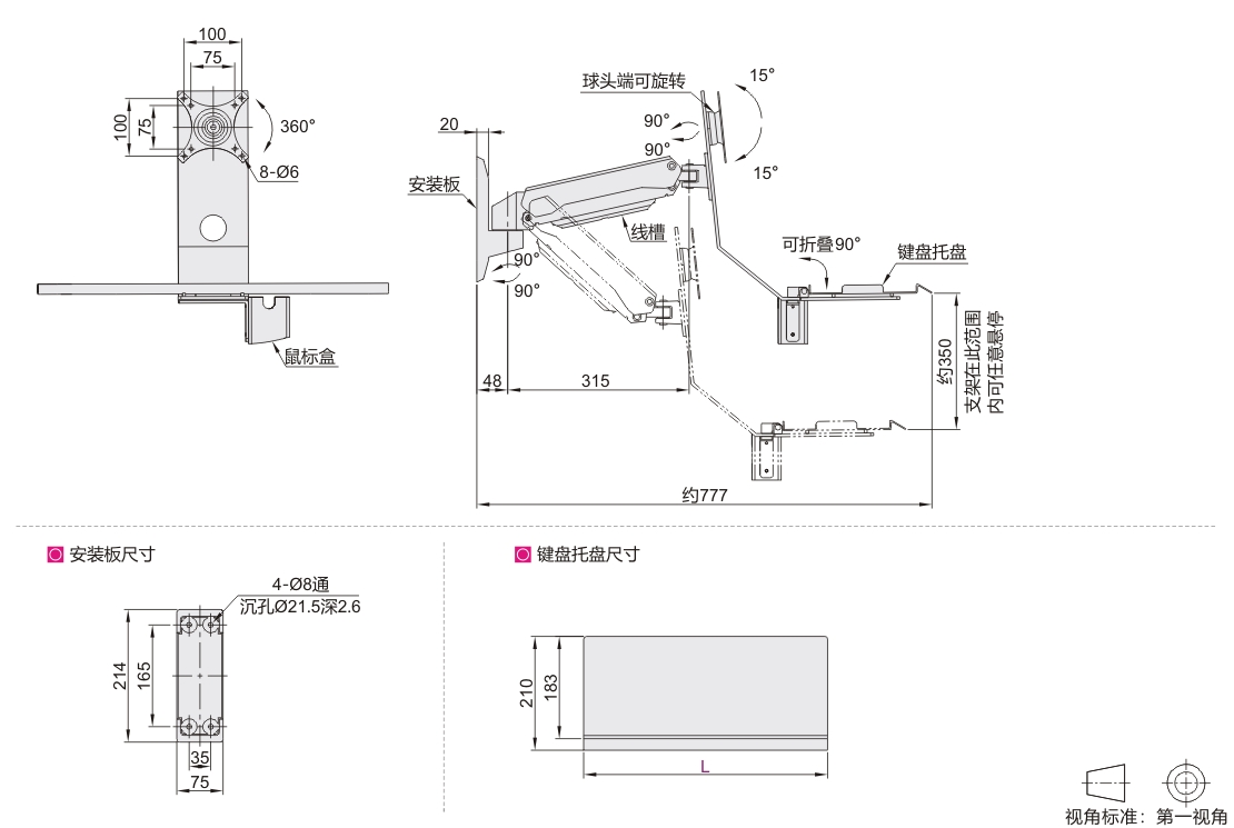 显示器支架 通用键盘 单显示器 壁挂式安装 固定型•气弹簧型•单臂/双臂