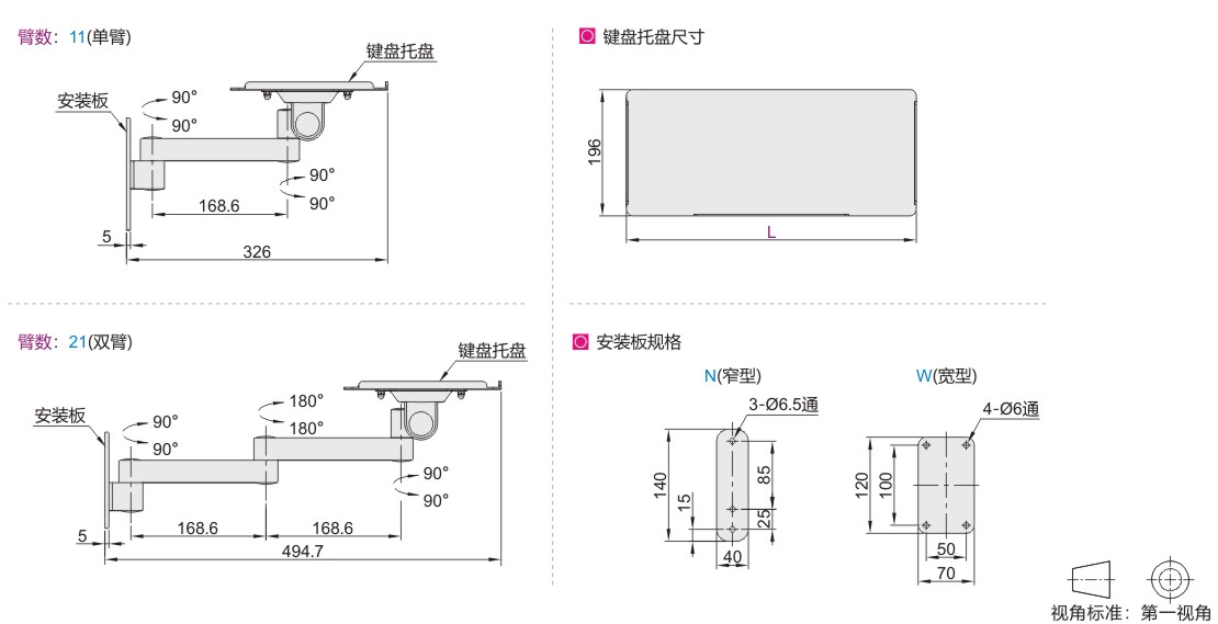 经济型键盘支架 壁挂式安装 单臂/双臂