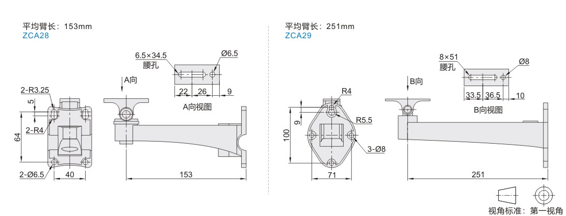 监控摄像头支架 壁挂式 平均臂长153/251mm 铝合金 白色