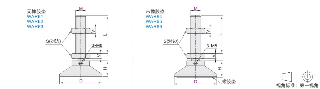| WAR64 | 带橡胶垫 | 丁腈橡胶 (NBR) |