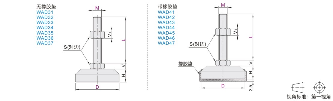 | WAD31 | WAD41 | 带防滑槽型 | S45C | S45C | 丁腈橡胶 (NBR) |
