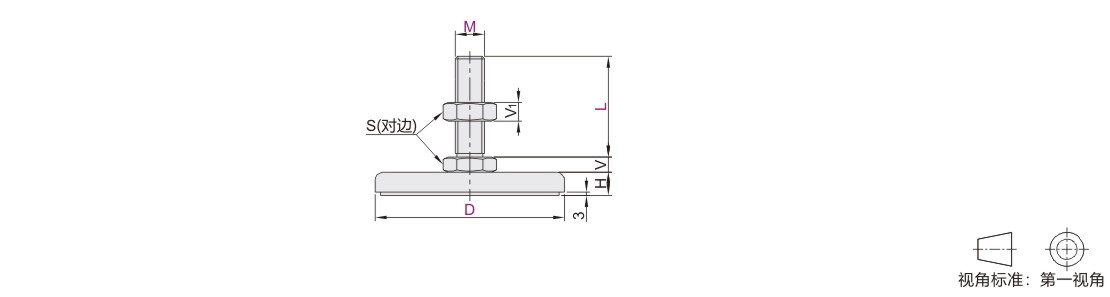 脚杯 超重载型 固定调节型 金属+聚氨酯垫 大底座D200