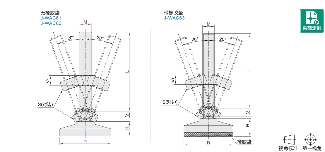 | J-WAC61 | 万向调节型 | 无橡胶垫 | SUS304 | SUS304 | — | — |