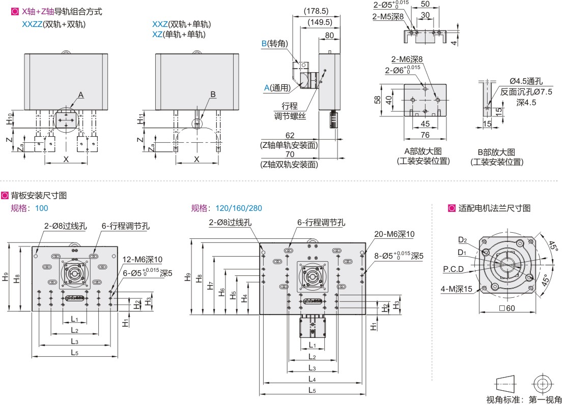 ①XXZZ(双轨+双轨):推荐多工位或悬臂场景选用;