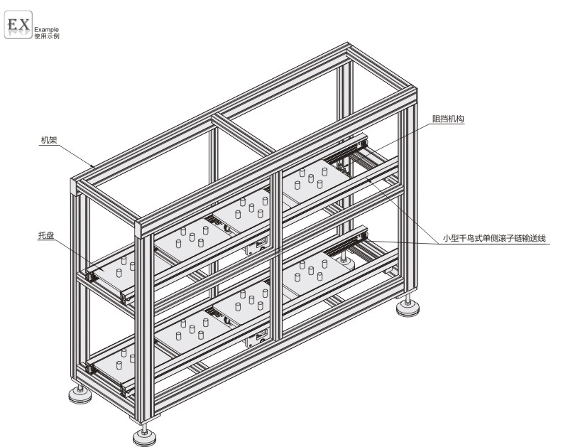 小节距单侧滚子链输送线主要用于装配及加工生产线中的物料输送,