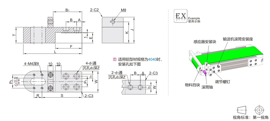 输送机滚筒安装座 侧面张紧型 圆头型 卡槽型 材质:S45C/A6061