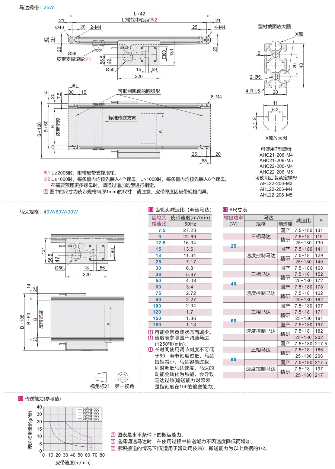 平皮带输送机 中间驱动 欧标型材(带轮直径40mm) 宽度指定型