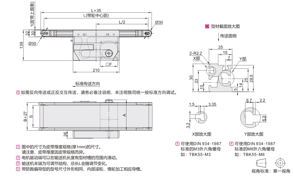 经济型平皮带输送机 宽度指定型 中间驱动双槽型材(带轮直径30mm)