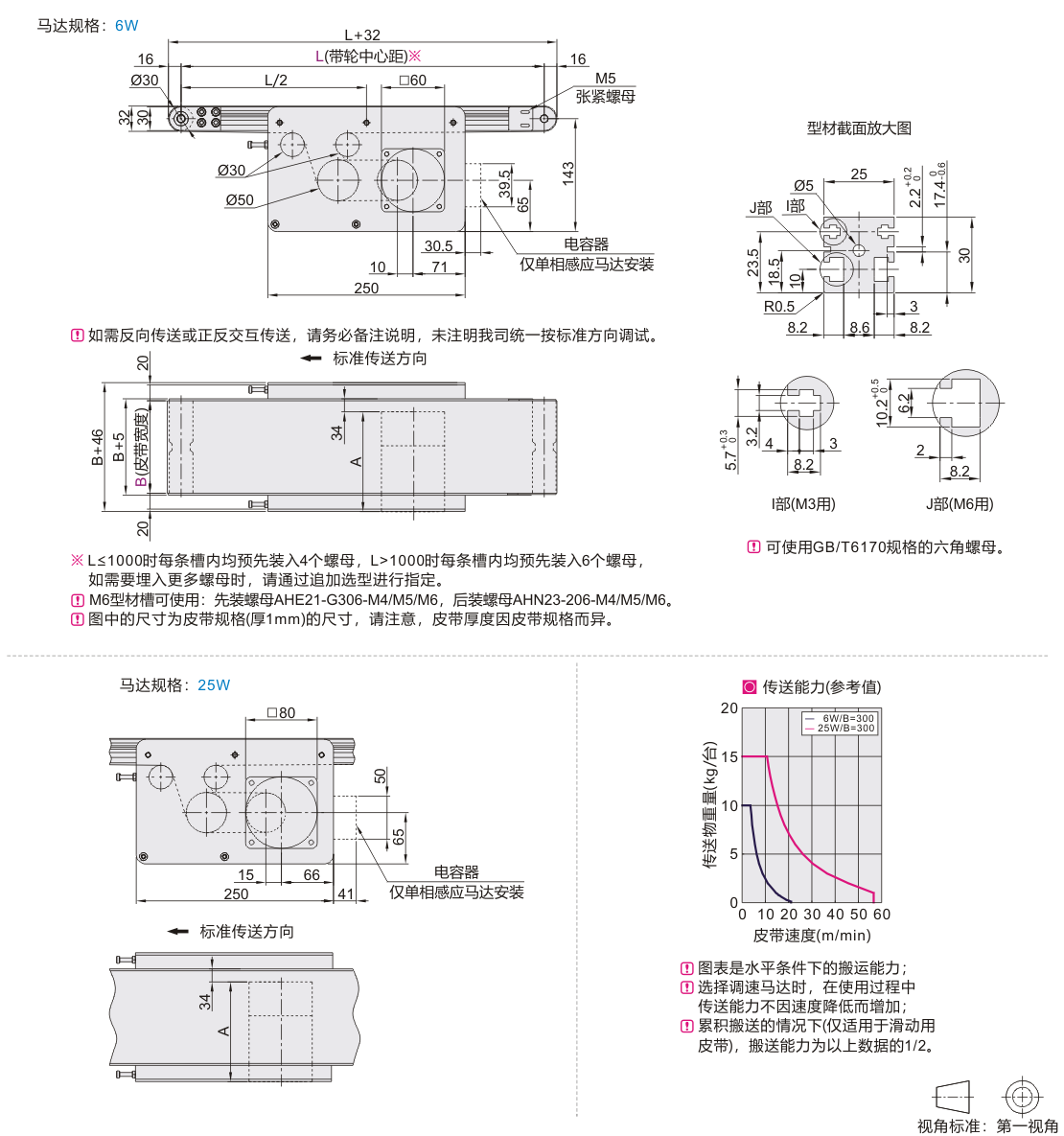 平皮带输送机 带导条防跑偏型 中间驱动双槽型材 带轮直径30mm 全皮带型